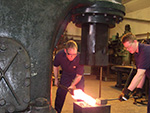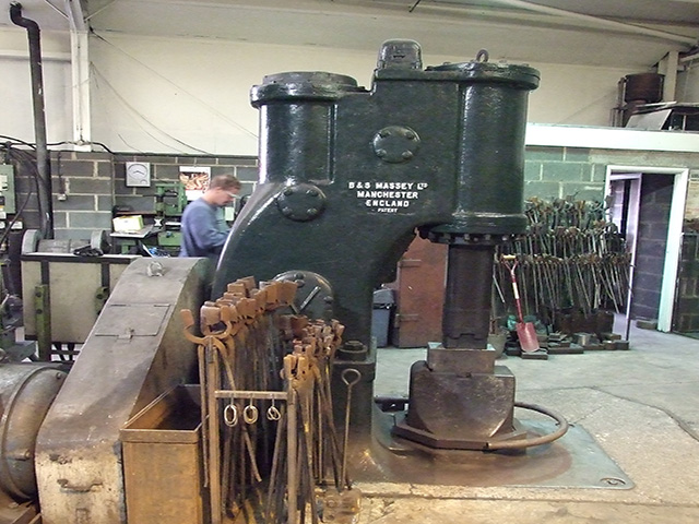 Forging worked between flat or simple contour dies by repeated strokes and manipulation of the workpiece. Also known as "hand" or "flat die " forging.Heavy workpieces could be processed using a smith-forging hammer, and smaller forgings are die formed in drop hammers. Smith forging hammers are typically steam or air-operated, consisting of a power actuated ram supported by a heavy cast iron frame. The final product is a result of the ram being powered into the dies containing the workpiece.