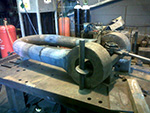 Roll forging is a process where round or flat bar stock is reduced in thickness and increased in length. Roll forging is performed using two cylindrical or semi-cylindrical rolls, each containing one or more shaped grooves. A heated bar is inserted into the rolls and when it hits a stop the rolls rotate and the bar is progressively shaped as it is rolled through the machine. The piece is then transferred to the next set of grooves or turned around and reinserted into the same grooves. This continues until the desired shape and size is achieved. The advantage of this process is there is no flash and it imparts a favorable grain structure into the workpiece.