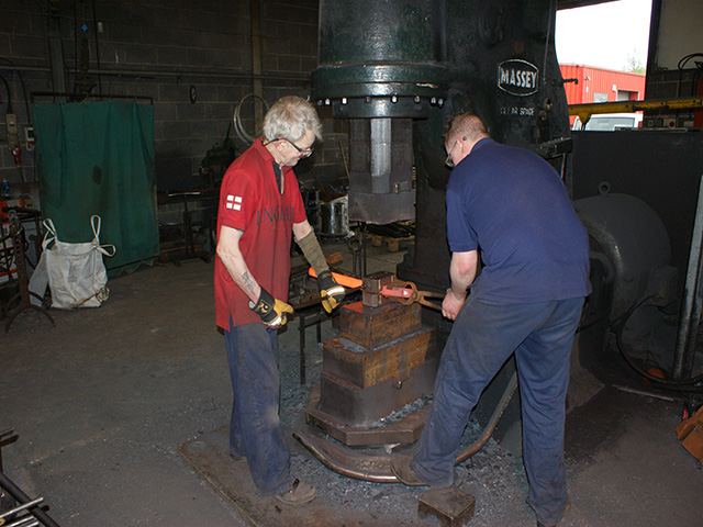 Drop forging is a metal shaping process, the metal to be formed is first heated then shaped by forcing it into the contours of a die, this force can be in excess of 2000 tons. The drop forging process can be performed with the material at various temperatures.
